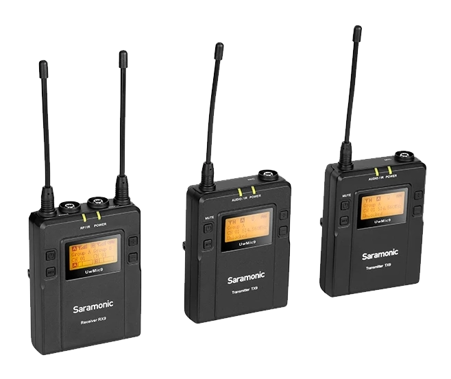 Saramonic UwMic9 — for DSLR videography, field recording and interviews, broadcast TV, ENG, providing dependable audio broadcasting and recording.